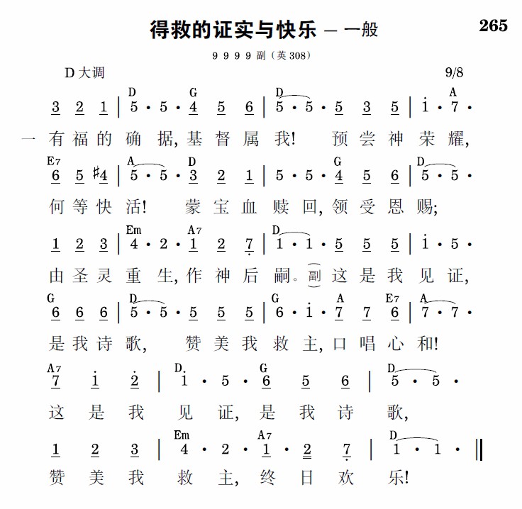 这是我见证,是我诗歌,赞美我救主,口唱心和!这是我见证,是我诗歌,赞美我救主,终日欢乐!