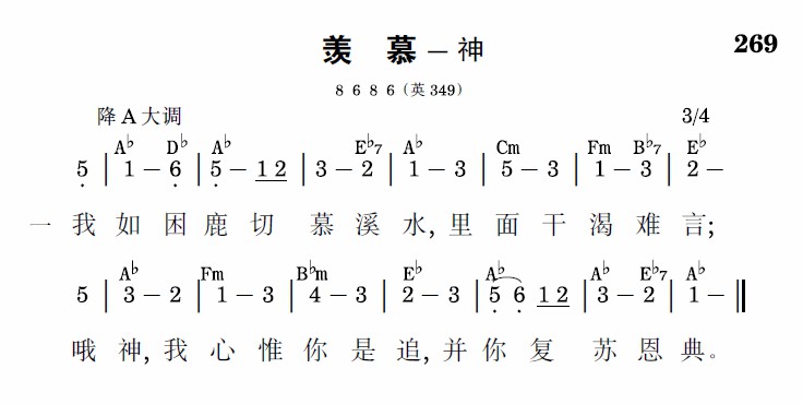我如困鹿切慕溪水,愿你赏我所欲;哦神,除你何能施惠?唯你是我所需。