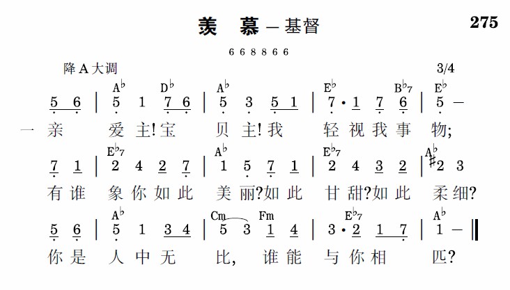 亲爱主!宝贝主!让我来向你诉,你是我所朝夕思慕,只有你能使我满足,得你什么都有,你外无所要求。