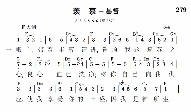 哦主,带着丰富请进,眷顾我这复苏之心,良心血已洗净;将你自己向我供应,使我享受你的丰盛,因我是神所生。