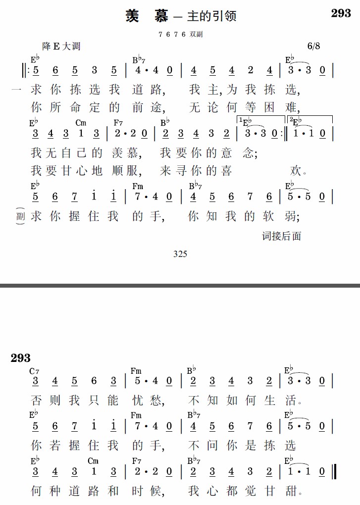 求你拣选我道路,我主,为我拣选,我无自己的羡慕,我要你的意念;你所命定的前途,无论何等困难,我要甘心的顺服,来寻你的喜欢。
