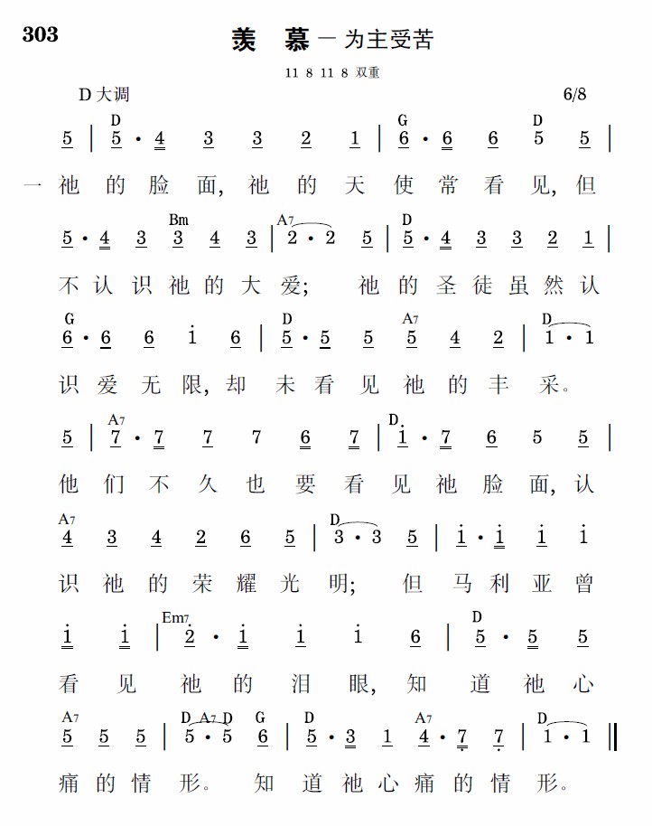 祂的脸面,祂的天使常看见,但不认识祂的大爱;祂的圣徒虽然认识爱无限,却未看见祂的丰采。他们不久也要看见祂脸面,认识祂的荣耀光明;但马利亚曾看见祂的泪眼,知道祂心痛的情形。知道祂心痛的情形。