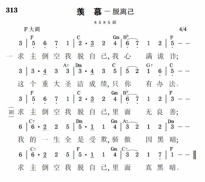 求主倒空我脱自己,里面无良善;我的一生全是受欺,骄傲因黑暗;求主倒空我脱自己,里面真黑暗。
