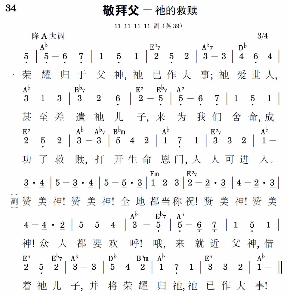 赞美神!赞美神!全地都当称祝!赞美神!赞美神!众人都要欢呼!哦,来就近父神,借着祂儿子,并将荣耀归祂,祂已作大事!