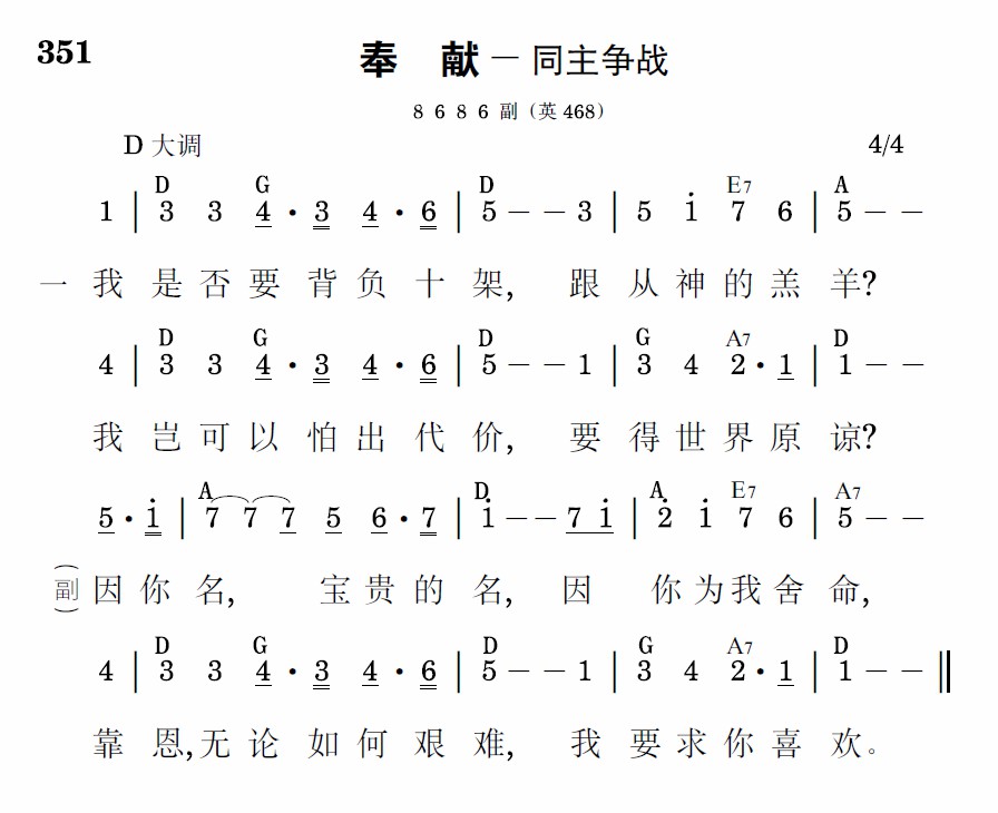 我要掌权,就得争战,哦主,加我力量;我愿受辱,我不畏难,靠你话语刚强。