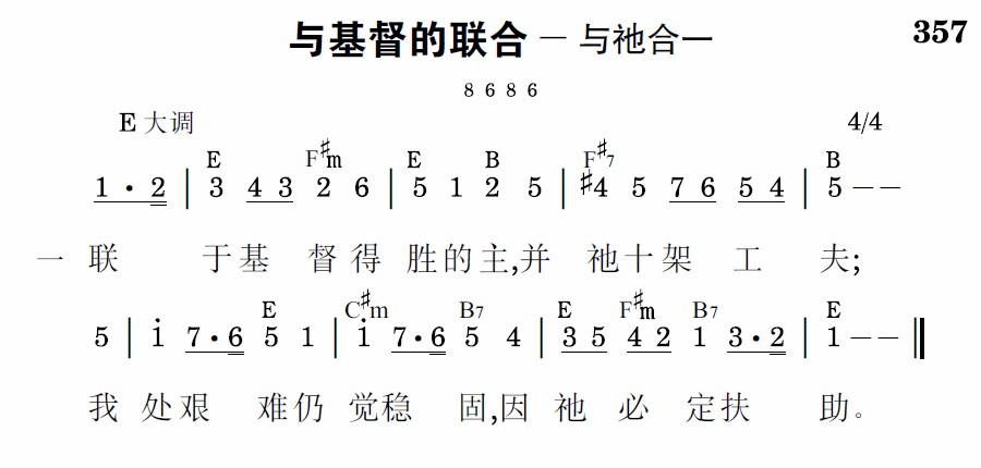 联于基督得胜的主,并祂十架工夫;我处艰难仍觉稳固,因祂必定扶助。