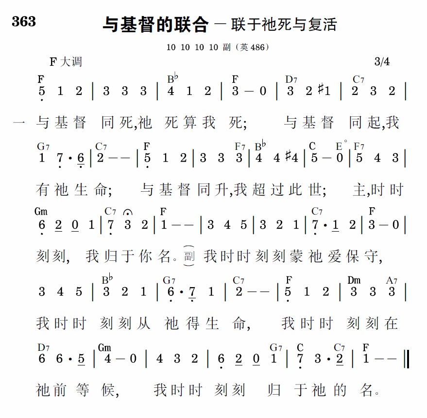 与基督同死,祂死算我死;与基督同起,我有祂生命;与基督同升,我超过此世;主,时时刻刻,我归于你名。