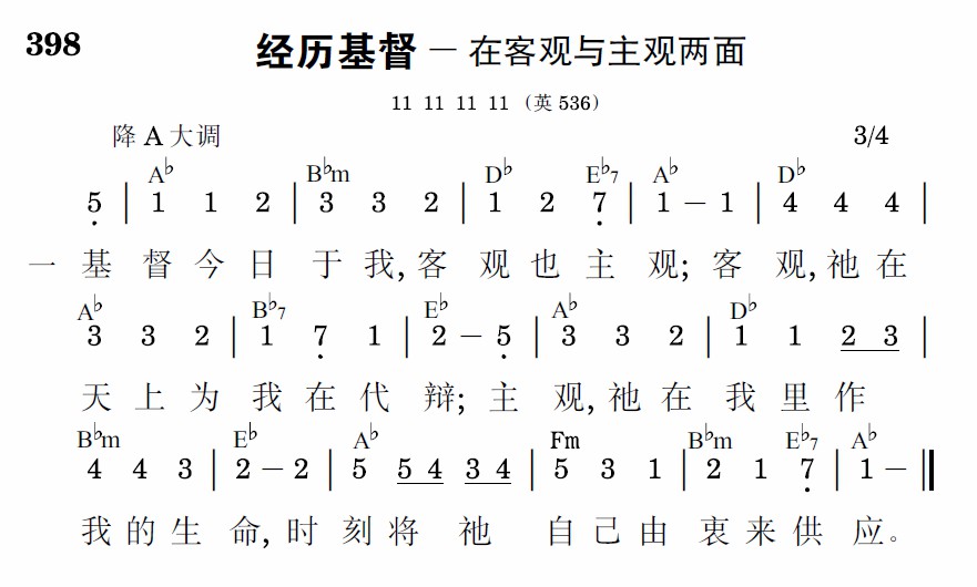 升天客观救主,今住高天上,不久祂要归回,众目得观赏;内住主观基督,今活我灵里,不久祂要显出,改变我贱体。