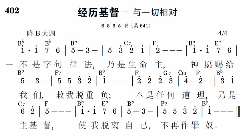 不是字句律法,乃是生命主,神愿赐给我们,救我脱重负;不是任何道理,乃是主基督,使我脱离自己,不再作罪奴。
