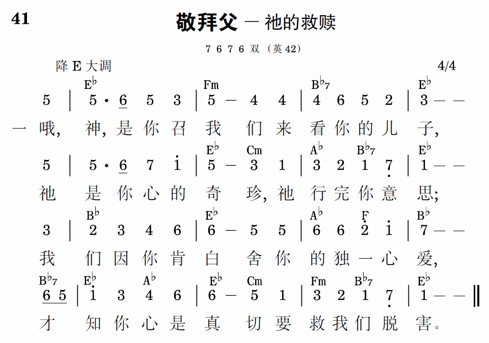 哦,圣父,怜悯的神,我们因子的名,才敢向你常求恩,才有永远生命。你耳所常爱听闻——,悠扬如音乐的,已叫我们的灵魂,脱尽所有猜疑。