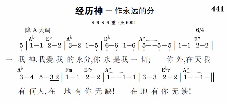 我神、我爱、我的永分,你永是我一切;你外,在天我有何人,在地有你无缺!在地有你无缺!