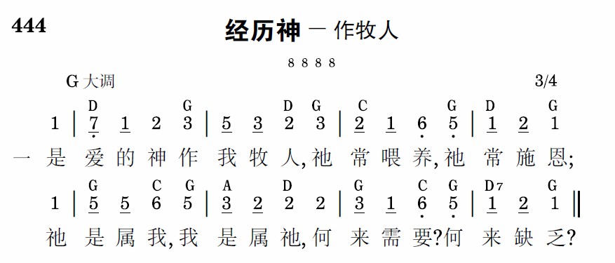 是爱的神作我牧人,祂常喂养,祂常施恩;祂是属我,我是属祂,何来需要?何来缺乏?