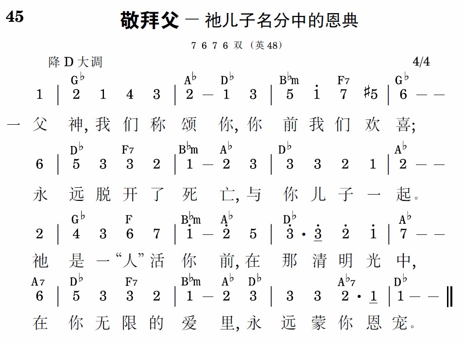 父神,我们称颂你,你前我们欢喜;永远脱开了死亡,与你儿子一起。祂是一“人”活你前,在那清明光中,在你无限的爱里,永远蒙你恩宠。