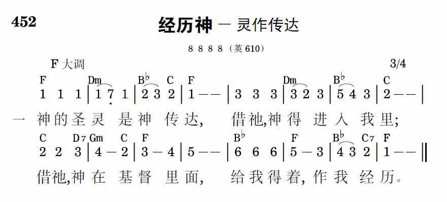 但愿父神对我之爱,在子神里成我恩典,借着灵神交通传达,使我得享神的丰满。