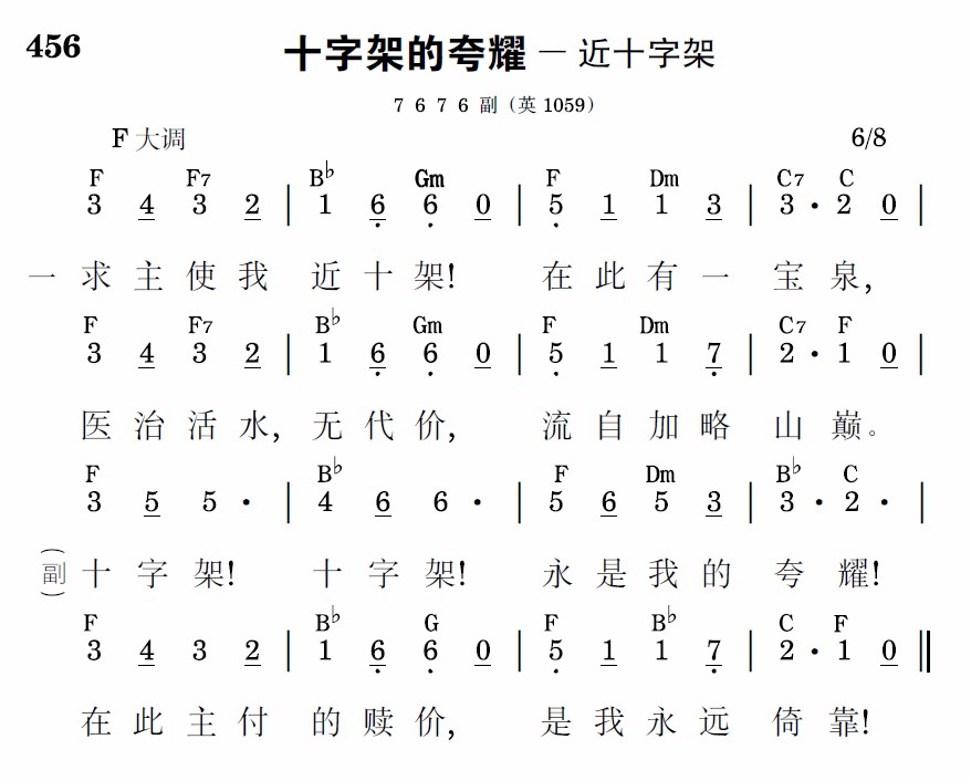 十字架!十字架!永是我的夸耀!在此主付的赎价,是我永远倚靠!