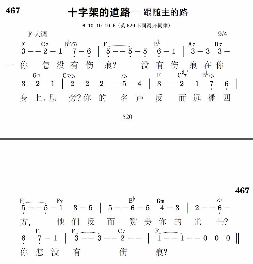 你怎没有伤痕?我是受迫、孤独、挂在树上,四围无情,都是残忍、狂妄,我是受了鞭伤、刺伤、钉伤,你怎没有伤痕?