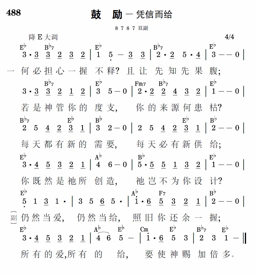 仍然当爱,仍然当给,照旧你还余一握;所有的爱,所有的给,要使神赐加倍多。