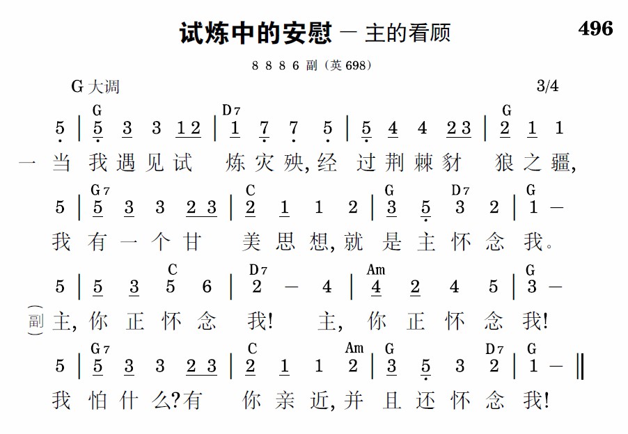 当我遇见试炼灾殃,经过荆棘豺狼之疆,我有一个甘美思想,就是主怀念我。
