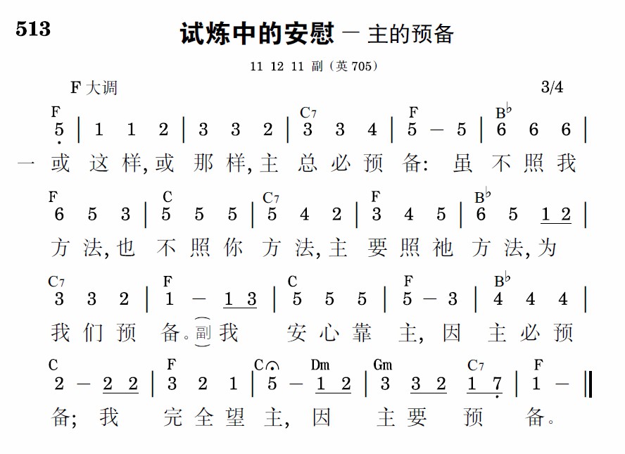或这时,或那时,主总必预备:虽不照我时候,也不照你时候,在主所定时候,主总必预备。