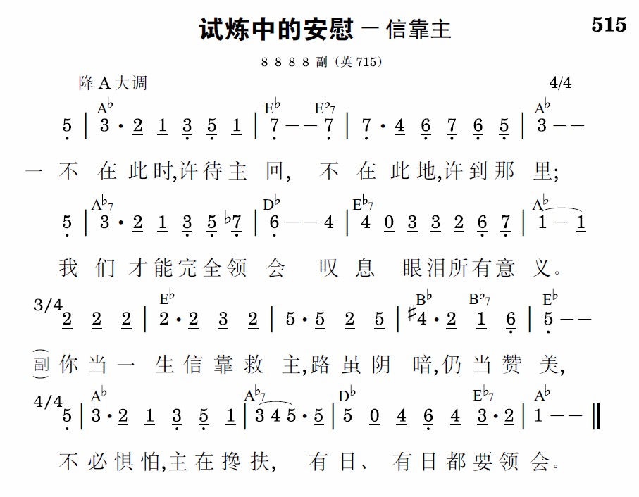 神知我路,手拿它钥,祂的带领充满智慧;有日我眼看见一切,祂在那里,我必领会。