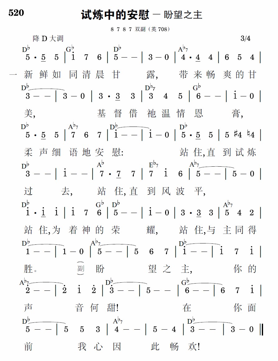 新鲜如同清晨甘露,带来畅爽的甘美,基督借祂温情恩膏,柔声细语的安慰:站住,直到试炼过去,站住,直到风波平,站住,为着神的荣耀,站住,与主同得胜。