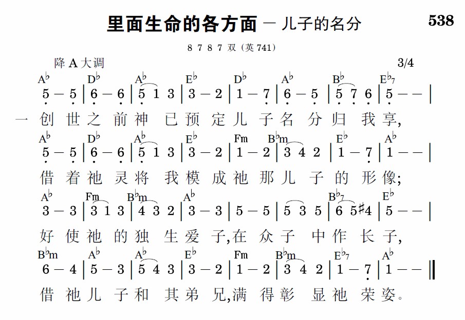 创世之前神已预定儿子名分归我享,借着祂灵将我模成祂那儿子的形像;好使祂的独生爱子,在众子中作长子,借祂儿子和其弟兄,满得彰显祂荣姿。