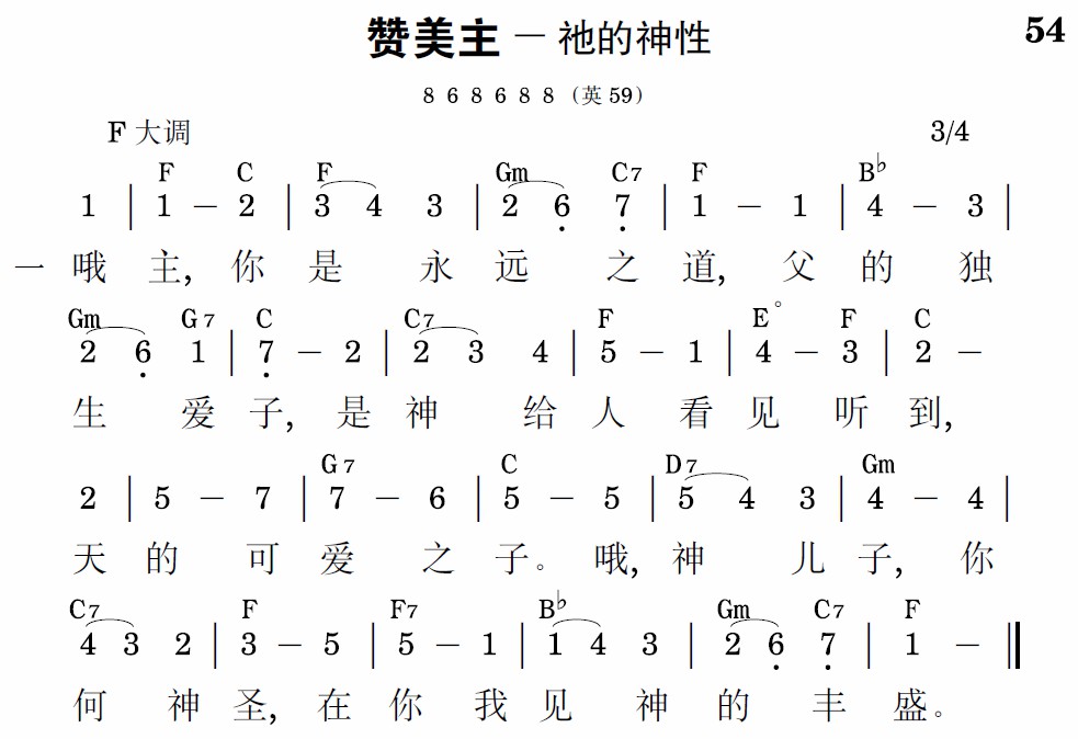 哦主,你是永远之道,父的独生爱子,是神给人看见听到,天的可爱之子。哦,神儿子,你何神圣,在你我见神的丰盛。
