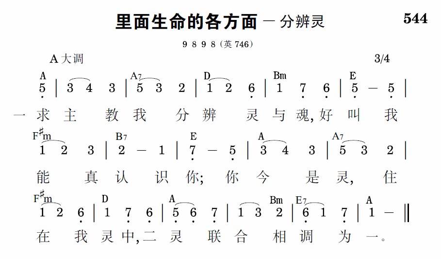 求主教我分辨灵与魂,好叫我能真认识你;你今是灵,住在我灵中,二灵联合相调为一。