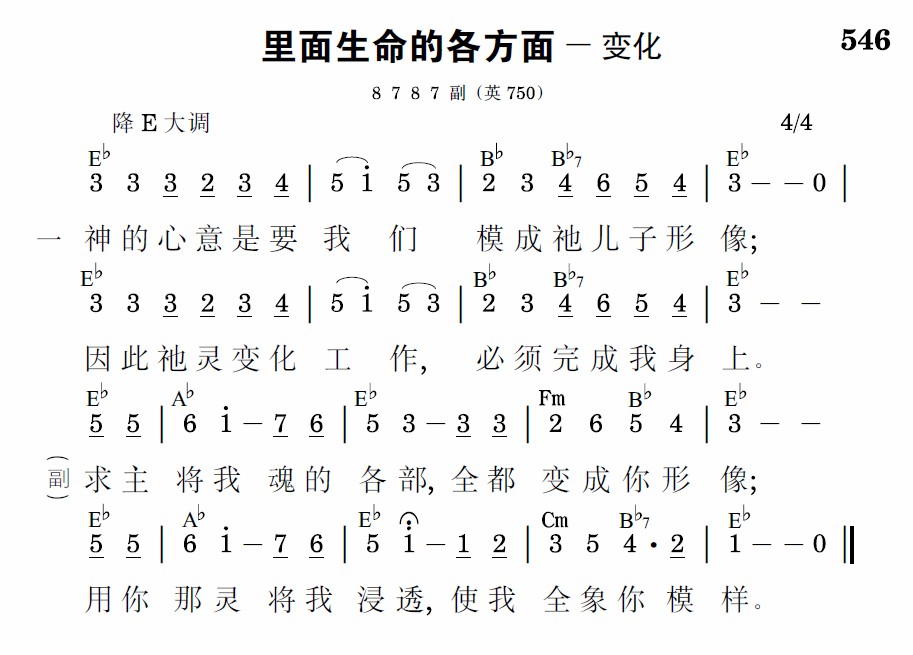 求主将我魂的各部,全都变成你形像;用你那灵将我浸透,使我全像你模样。