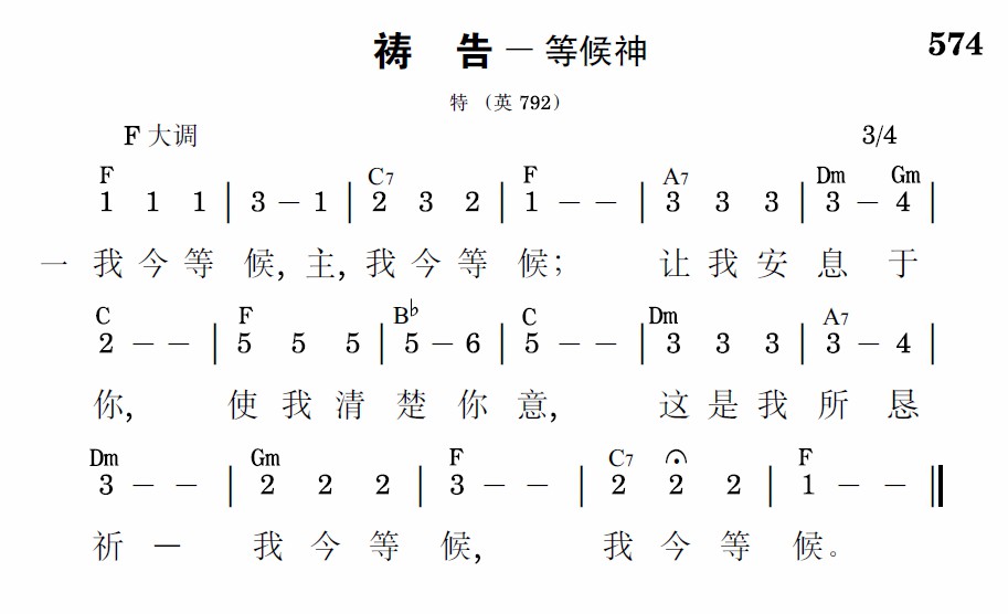 我今等候,主,我今等候;愿我所有祷告,都是你的发表,使神得着荣耀——我今等候,我今等候。