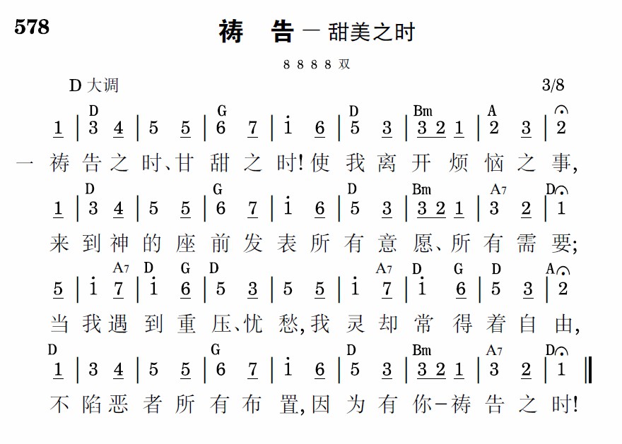 祷告之时、甘甜之时!如有双翼载我愿辞,到祂宝座向神求恳,祂是信实,祂是全真。祂既命我寻求祂面,信祂话语,靠祂恩典,我要将我重担卸释在于你前——甘甜之时!