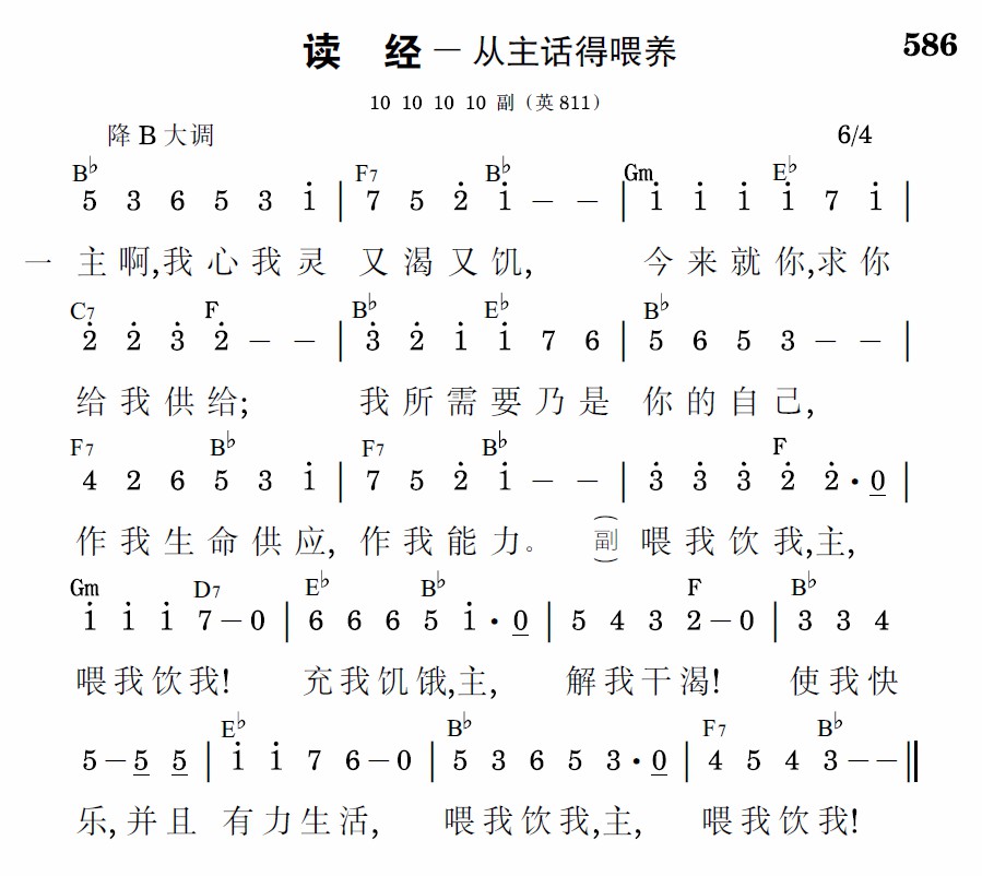 喂我饮我,主,喂我饮我!充我饥饿,主,解我干渴!使我快乐,并且有力生活,喂我饮我,主,喂我饮我!
