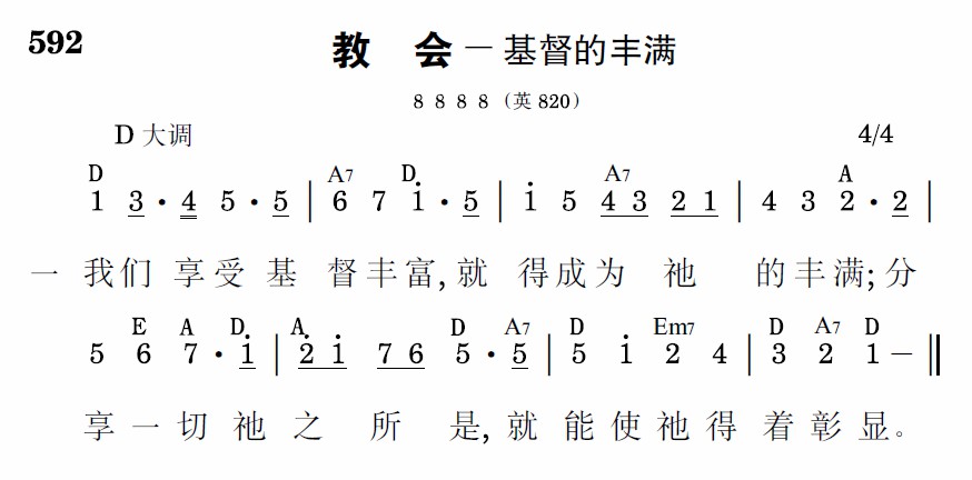丰富是我里面基督,丰满是我外面召会;充满基督,作祂表现,得与基督同样宝贵。
