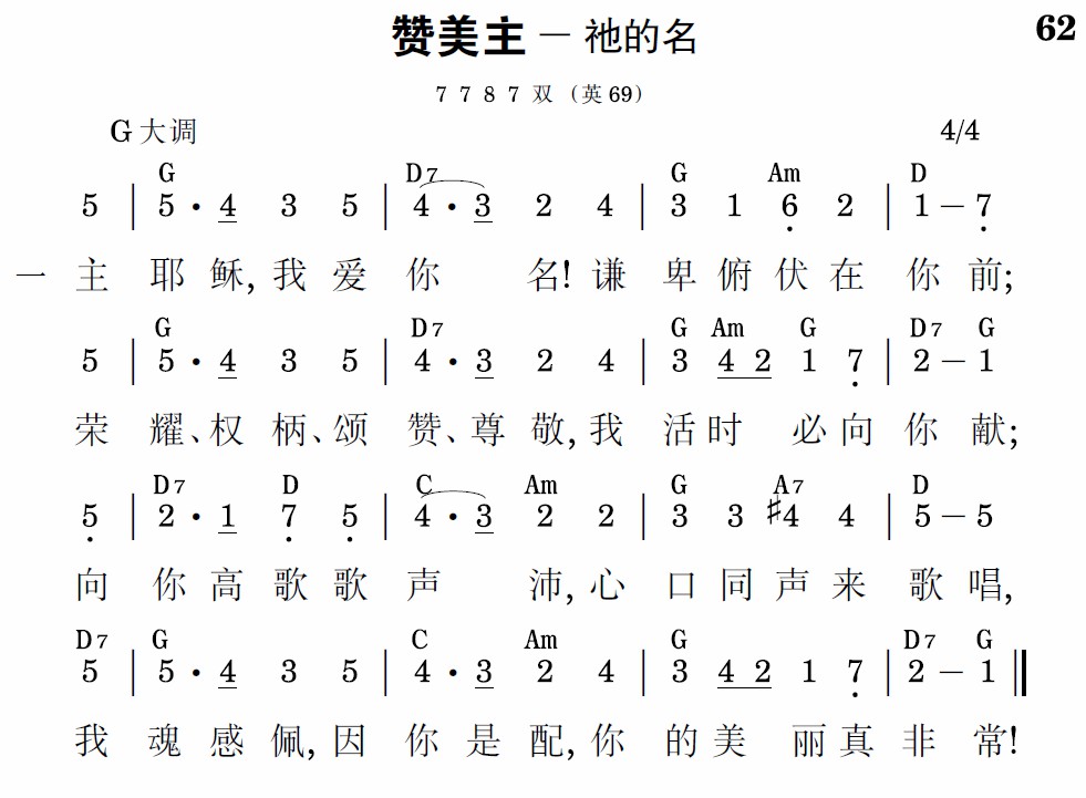 主耶稣,我爱你名!谦卑俯伏在你前;荣耀、权柄、颂赞、尊敬,我活时必向你献;向你高歌歌声沛,心口同声来歌唱,我魂感佩,因你是配,你的美丽真非常!