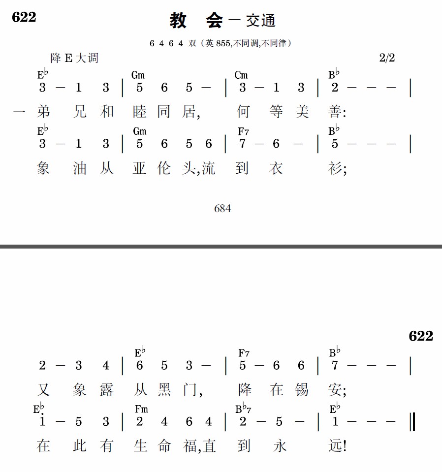 弟兄和睦同居,何等美善:像油从亚伦头,流到衣衫;又像露从黑门,降在锡安;在此有生命福,直到永远!