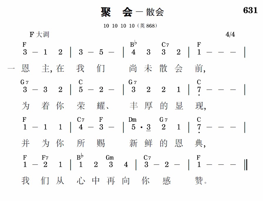 恩主,在我们尚未散会前,为着你荣耀、丰厚的显现,并为你所赐新鲜的恩典,我们从心中再向你感赞。