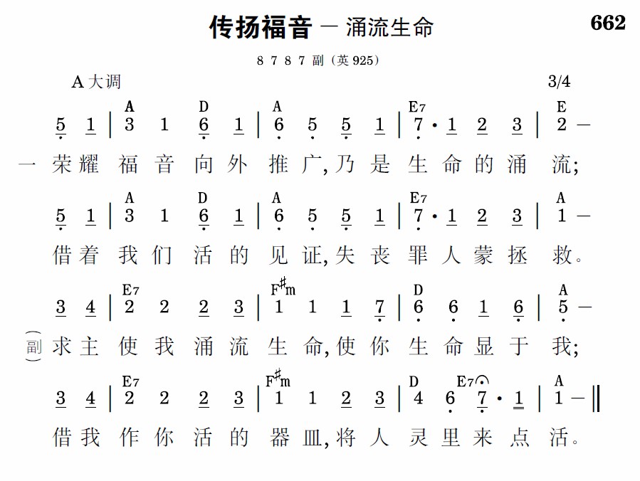 荣耀福音向外推广,乃是生命的涌流;借着我们活的见证,失丧罪人蒙拯救。