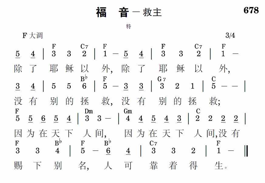 除了耶稣以外,除了耶稣以外,没有别的拯救,没有别的拯救;因为在天下人间,因为在天下人间,没有赐下别名,人可靠着得生。