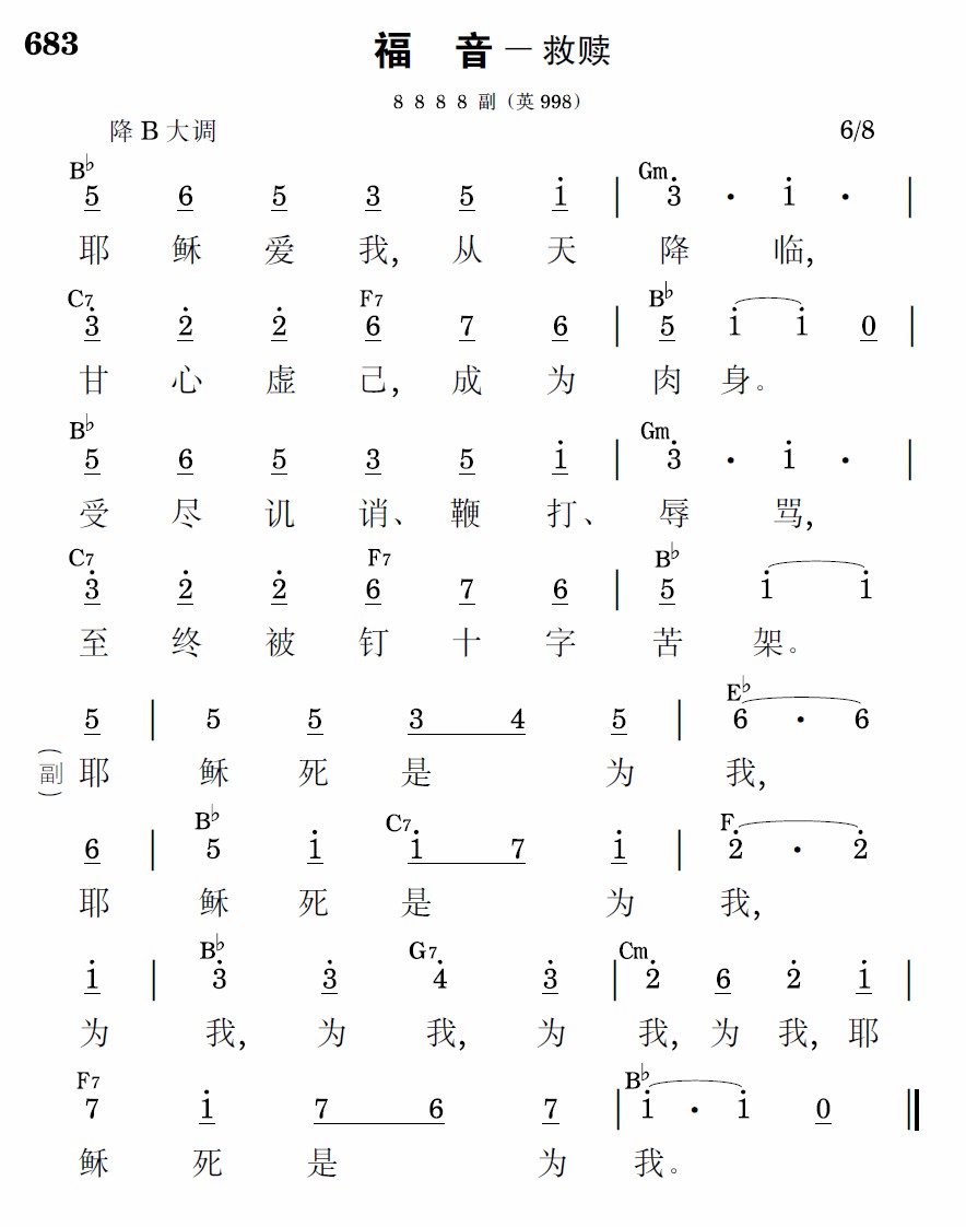耶稣死是为我,耶稣死是为我,为我,为我,为我,为我,耶稣死是为我。