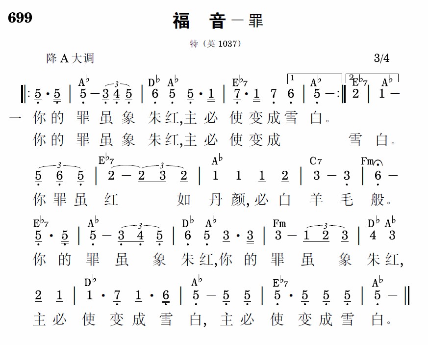 你的罪虽像朱红,主必使变成雪白。你的罪虽像朱红,主必使变成雪白。你罪虽红如丹颜,必白羊毛般。你的罪虽像朱红,你的罪虽像朱红,主必使变成雪白,主必使变成雪白。