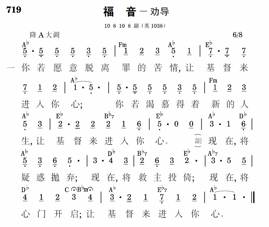 若要黑暗变成无上光明,让基督来进入你心;若要病痛转为永久康宁,让基督来进入你心。
