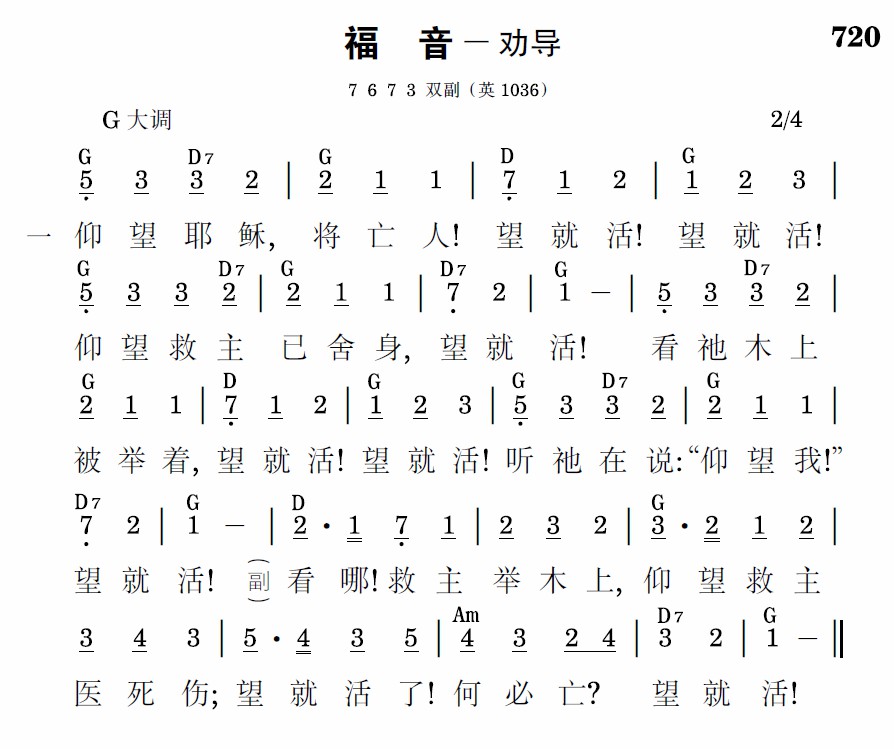 看哪!救主举木上,仰望救主医死伤;望就活了!何必亡?望就活!