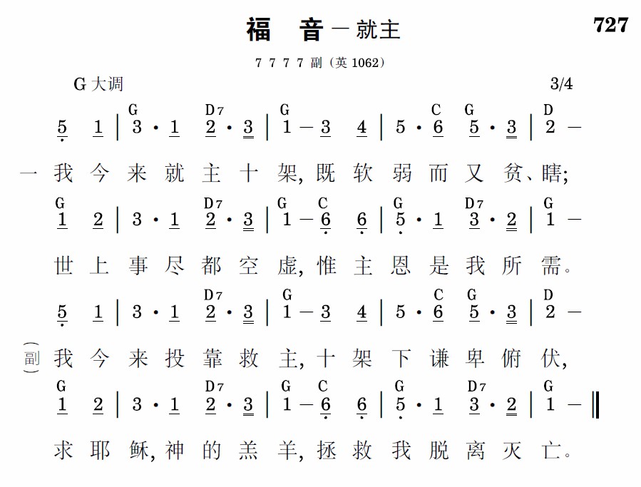 我今来就主十架,既软弱而又贫、瞎;世上事尽都空虚,唯主恩是我所需。