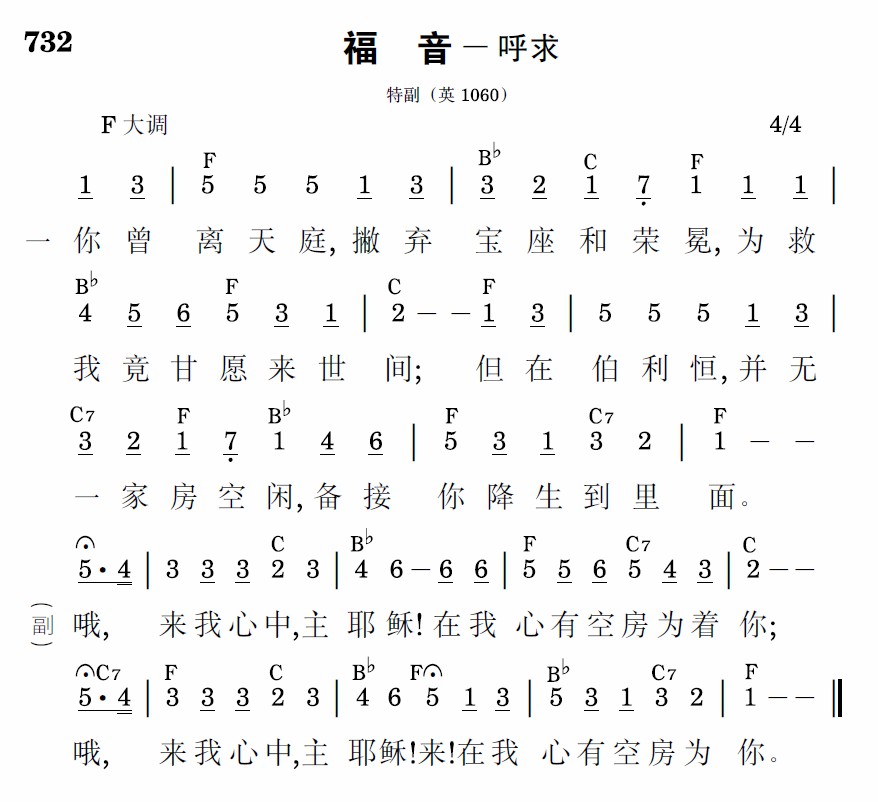 哦,来我心中,主耶稣!在我心有空房为着你;哦,来我心中,主耶稣!来!在我心有空房为你。