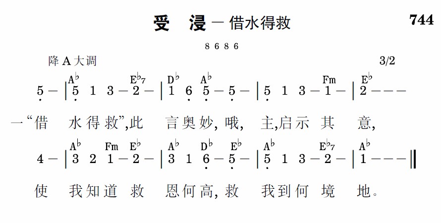 “借水得救”,此言奥妙,哦,主,启示其意,使我知道救恩何高,救我到何境地。