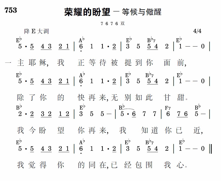 在我全人最深处,我已听见你话;感谢你,因你清楚语我以你计划。你的再临何等近!你的显现已快!恩典余日何等紧!仇敌就要败坏!