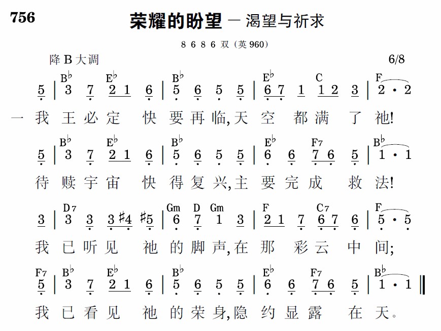我眼专看我的救主,我心已经在天,我口不说别的题目,只说与主相见。主的再临已经紧近,主来原是为我;主的应许永远坚定,从来没有空说。