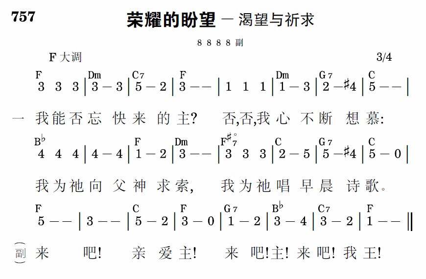 我能否忘快来的主?否,否,我心不断想慕:我为祂向父神求索,我为祂唱早晨诗歌。