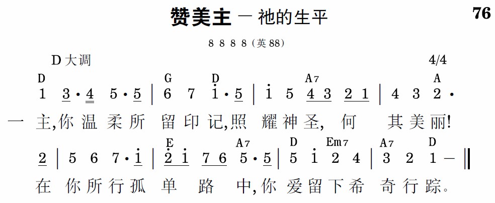 主,你温柔所留印记,照耀神圣,何其美丽!在你所行孤单路中,你爱留下希奇行踪。