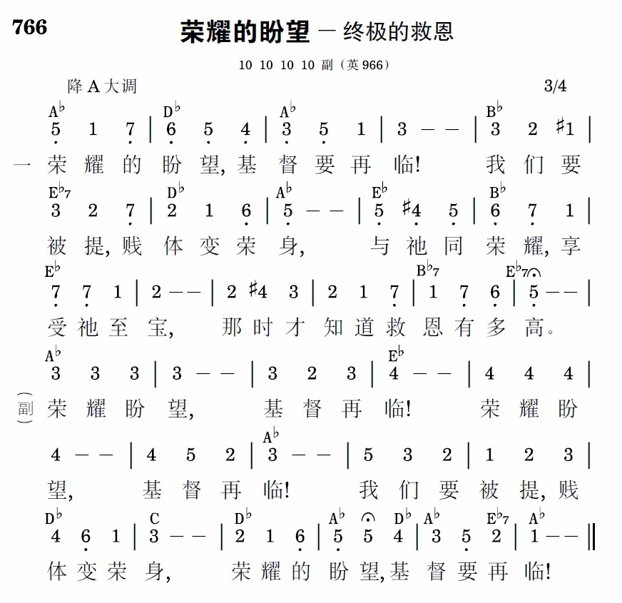 荣耀盼望,基督再临!荣耀盼望,基督再临!我们要被提,贱体变荣身,荣耀的盼望,基督要再临!